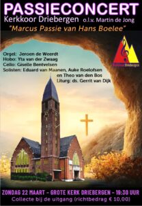 Het Kerkkoor Driebergen voert onder leiding van Martin de Jong op zondagavond 22 maart de Marcus Passie van Hans Boelee uit.