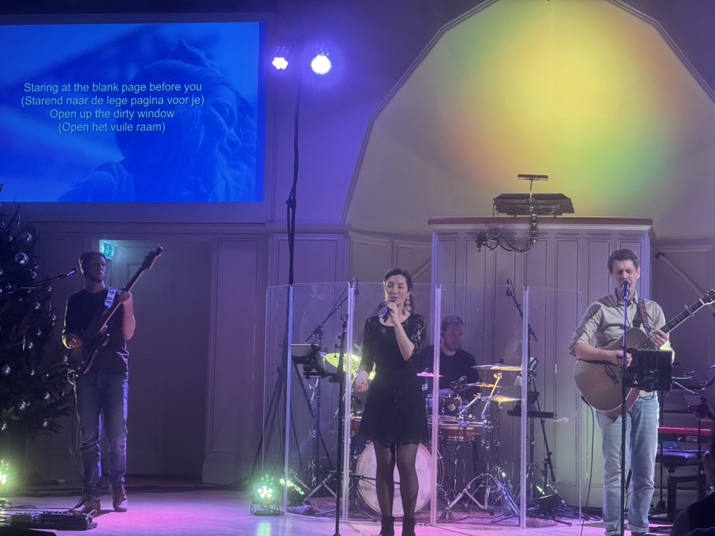 Onze eigen predikant, dominee Gerrit van Dijk, verbond de nummers met korte, rake teksten. Voor vaste bezoekers van de reguliere diensten was dat direct herkenbaar: dezelfde betrokken, invoelende manier van spreken, met oog voor wat er bij mensen leeft. Niet zwaar aangezet, maar wel zorgvuldig; niet moraliserend, wel richtinggevend. Hij gaf woorden aan wat de muziek al opriep, zonder de liedjes “uit te leggen”. Juist daardoor ging je anders luisteren: alsof een bekende tekst ineens een tweede laag kreeg.